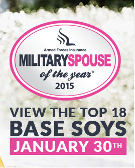 Today Military Spouse magazine announced the Top 18 candidates for the 2015 Military Spouse of the Year. I was beyond humbled, honored, and surprised when I realized that I was amongst the Top 18! You can read about all 18 candidates here. The next round of voting will occur on ONE DAY – February 4th for the branch-level winners (one per branch). I encourage all of you to read about all of the candidates, and vote for EACH category (National Guard, Marines, Coast Guard, Army, Navy, and Air Force).